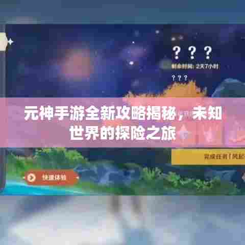 随着游戏技术的不断进步,手游市场日益繁荣,在众多游戏中,"元神手游"以其独特的魅力吸引了众多玩家的目光,本文将为大家带来关于元神手游的最新攻略,帮助玩家更好地探索未知世界,提升游戏体验。