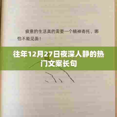 随着冬季的脚步逐渐深入,时间的沙漏无情地流淌,转眼间,我们迎来了每年的最后一个月——十二月,在这个月份的最后几天里,尤其是夜深人静的时刻,总能勾起人们内心深处的情感与思绪,十二月二十七日,这个特殊的夜晚,更是有着许多令人陶醉的文案长句,它们如同夜空中闪烁的星星,照亮人们的心灵深处。