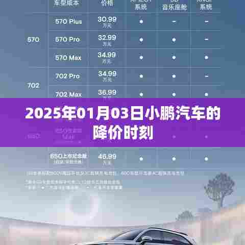随着新能源汽车市场的日益繁荣,小鹏汽车作为国内领先的智能电动汽车品牌,一直备受关注,而在特定的时间点,如2025年1月3日,小鹏汽车的降价动态更是引起了广大消费者和市场的关注,本文将从多个角度探讨这一事件,带领读者深入了解小鹏汽车降价背后的原因、影响以及可能的发展趋势。