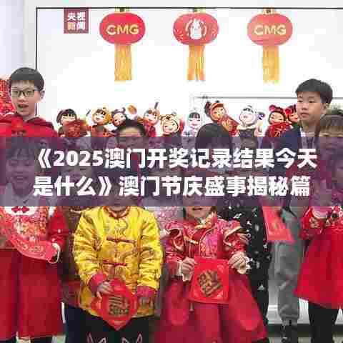 《2025澳门开奖记录结果今天是什么》澳门节庆盛事揭秘篇并非一部关于赌博或彩票的作品,而是一部深入揭示2025年澳门各类节庆盛事的文献资料。该文献旨在为读者提供一个全方位的澳门节庆文化观察视角,通过对澳门各类传统文化节庆活动的详细记录与剖析,以一系列的时间线和事实数据为基础,为读者呈现出澳门节庆文化的深度与广度,从而加深公众对于澳门地区民俗节日和文化庆典活动的了解。