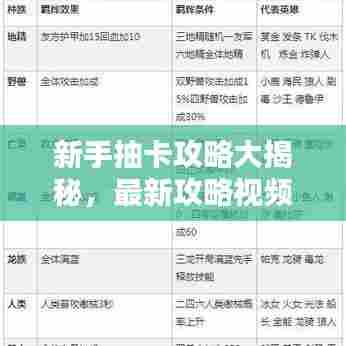 2、最新抽卡技巧分享:该视频分享了一些最新的抽卡技巧,包括免费抽卡的利用、付费抽卡的策略等。