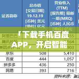 随着科技的飞速发展,移动互联网已经渗透到我们生活的方方面面,智能手机成为了我们日常生活中不可或缺的一部分,在这个信息爆炸的时代,如何快速获取所需信息,便捷地浏览各类资讯,成为我们面临的重要问题,拥有一款强大搜索引擎的手机APP显得尤为重要,就让我们一起了解并下载手机百度一下APP,开启智能生活新篇章。
