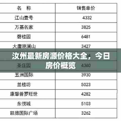 汝州最新房源价格大全,今日房价概览
