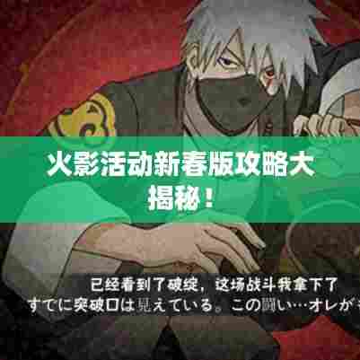 随着新春的到来,火影活动也迎来了全新的更新与改版,对于广大火影迷来说,这无疑是一场充满挑战与机遇的盛宴,本文将为大家带来火影活动最新攻略新春版,助你更好地参与其中,赢取丰厚的奖励。